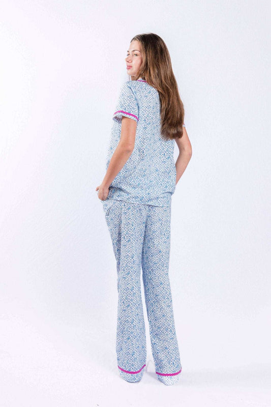 Dutch Lily Short Sleeve Button Down Pant Set Pajamas