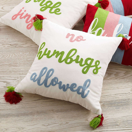 No Humbugs Allowed Crewel Tassel Pillow - Christmas