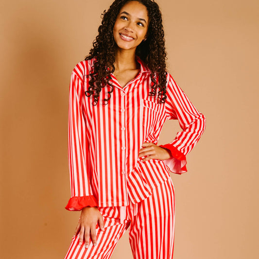 The Darling Effect Sweet Dreams Festive Pajama Set-Peppermint Stripes