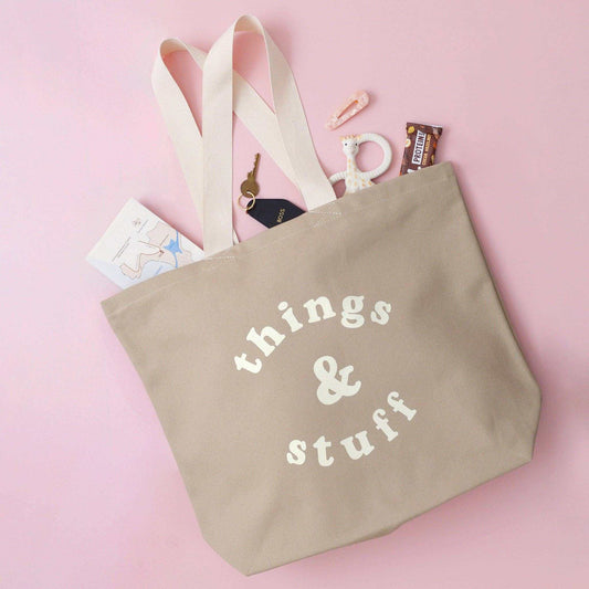 Things & Stuff - Stone Canvas Tote Bag by Alphabet Bags UK