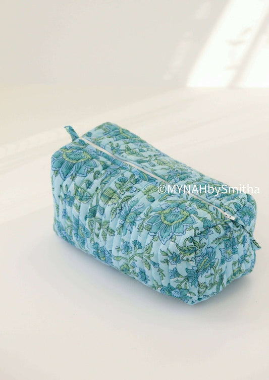 Blue green floral travel/make up/organizer bag - Large